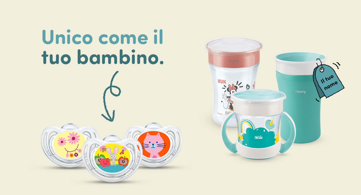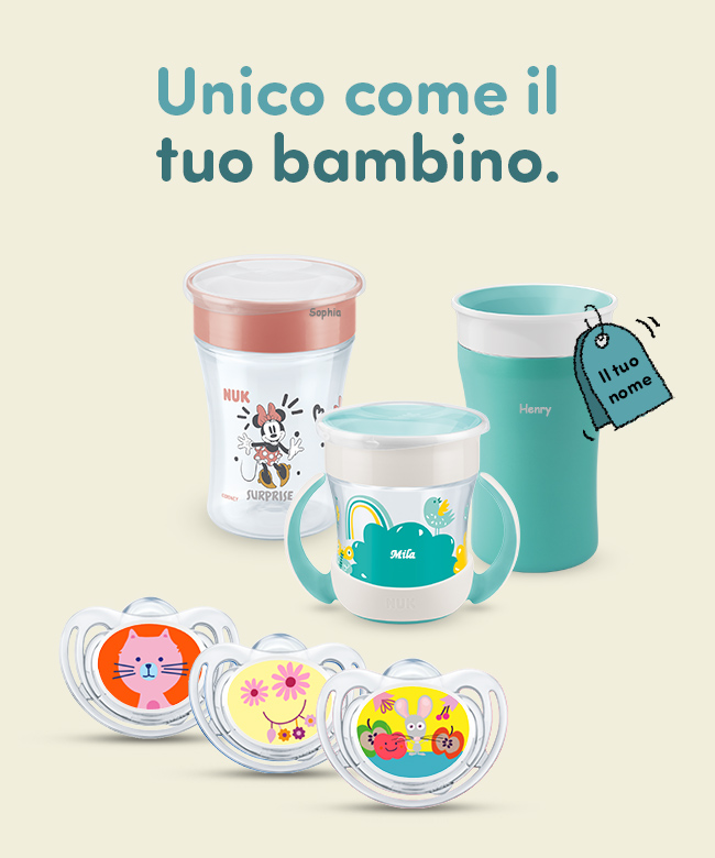 Nello store online NUK troverai un'ampia selezione di prodotti per l'infanzia personalizzabili. Dai un'occhiata sul sito e progetta un regalo secondo il tuo gusto personale: